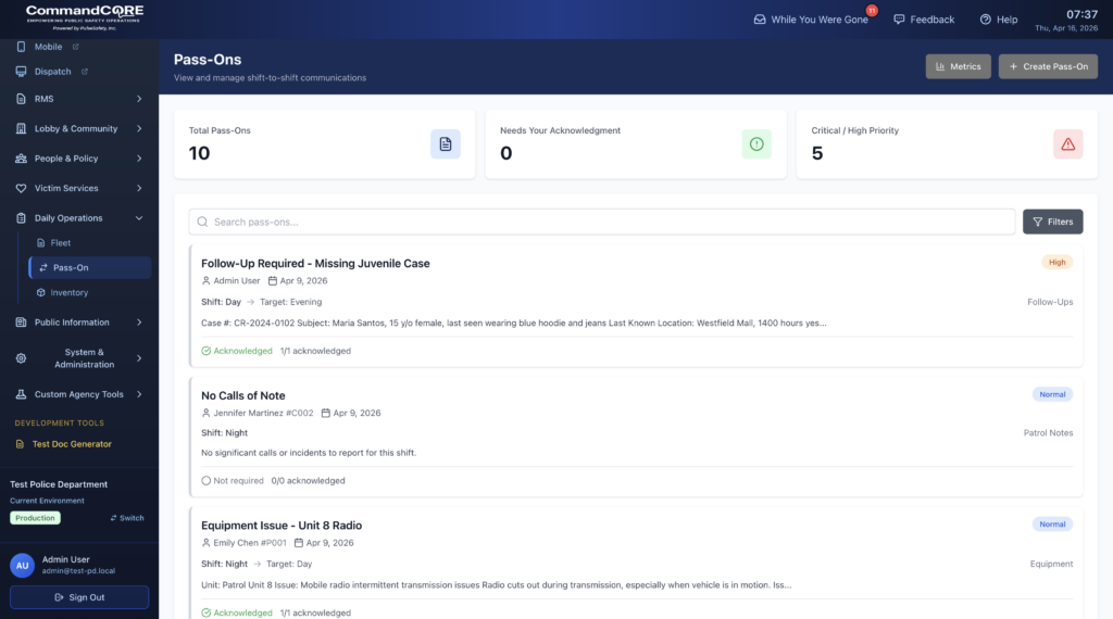 PulseRMS: Records Management System designed to integrate incident reporting with CommandCORE’s operational tools.