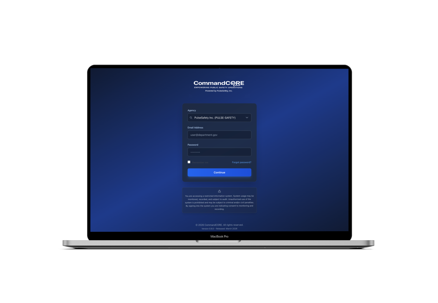 PulseSafety, Inc. and the CommandCORE platform are currently in active development. Product availability and feature sets may change prior to public release. CAD, RMS, and JMS modules are in research and are not yet available for production environments.